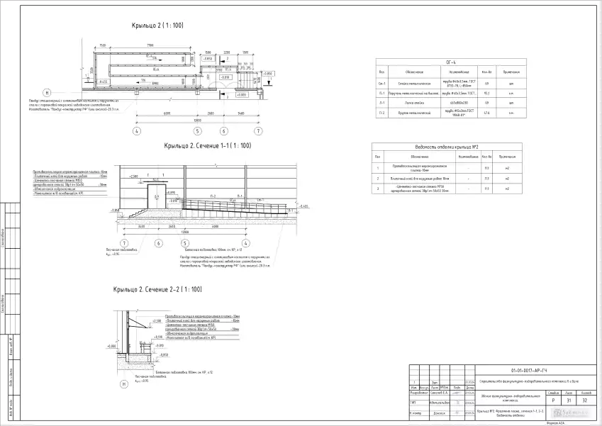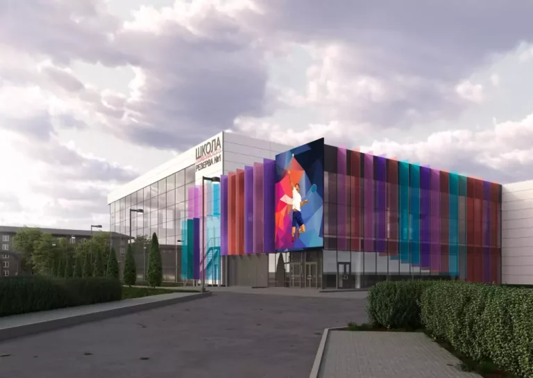 Часть здания для размещения административно-бытовых помещений располагается в осях 1-7 и А-Д. Имеет размеры 30×20,3 м. Запроектирован 1 вход в здание и два выхода без учета техниче-ских помещений. Содержит 2 этажа. Высота 1-ого этажа до низа подвесного потолка-3.1 м, высота 2-ого этажа до низа подвесного потолка-4 м Внешними ограждающими элементами являются сэндвич-панели и витражное остекление. Схема планировки помещений- коридорная. Включает в себя следующие помещения: раздевальные комнаты универсальные для занимающихся, сан. узлы, в том числе для мгн, душевые, хоз. помещения, мед. кабинет, тренерские, гардеробы, инвентарные, комнату охраны, гардероб, ресепшн. Для электрощитовой, помещения ввода инженерных сетей и венткамеры запроектированы отдельные входы. Связь со вторым этажом осуществляется за счет ж/б лестницы, расположенной в осях 6-7, А-Б. На главном входе предусмотрен тамбур для предот-вращения проникания холодного воздуха с улицы. Со второго этажа запроектирована эвакуационная открытая лестница 3-ого типа, ведущая на ур. земли и лестница на крышу через люк в пом. 2.01. Кровля выполнена по профлисту с уклоном 1.91%, 2.83%, 3%.. Высота парапета кровли 11 м.