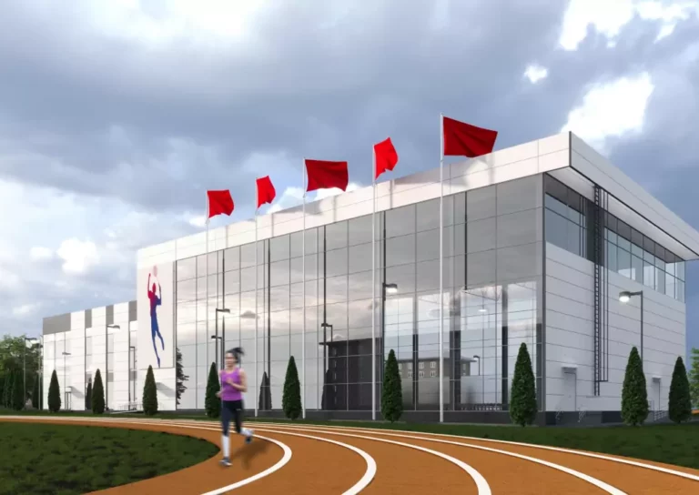 Физкультурно-оздоровительный комплекс состоит из двух частей- часть здания в осях 1-7/А -Д предназначена для размещения административно-бытовых помещений, в осях 1-7/Д-Н – для раз-мещения универсального спортивного зала.