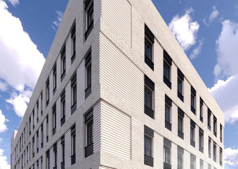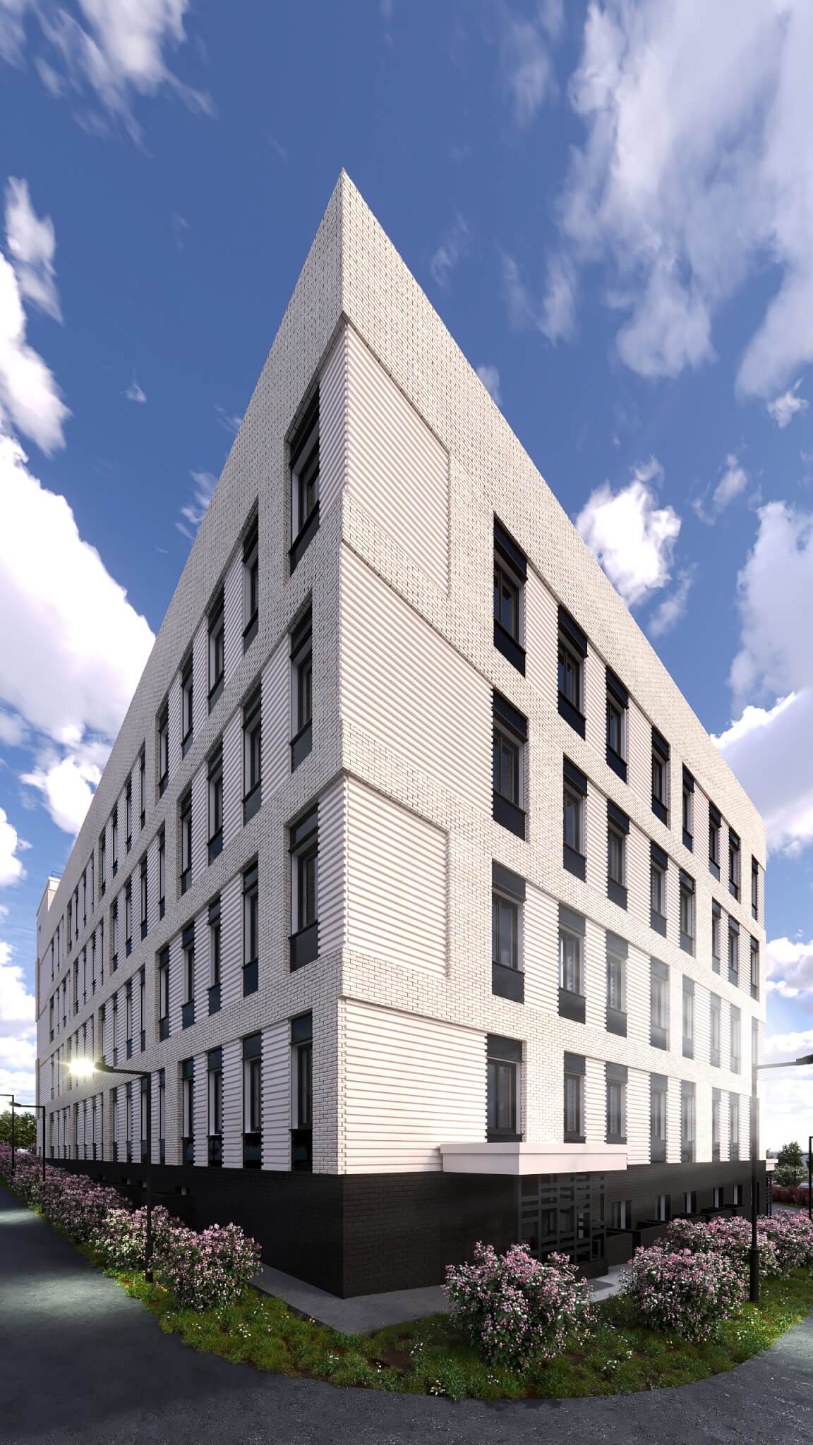 В качестве внешней отделки используются стеклофибробетонные панели.